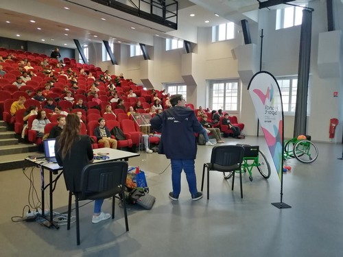 Très belle présentation avec la fédération Handisport pour les élèves de 4èmes ! Les élèves ont eu l'occasion de faire un parcours en fauteuil roulant, et un parcours "à l'aveugle"