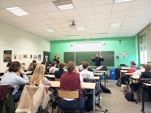 La Semaine Jésuite c’est aussi l’occasion d’un vrai dialogue entre les jésuites qui nous visitent et nos élèves. Tous les jours, les jésuites répondent à l’invitation des professeurs de tous les niveaux de classes pour animer des cours à deux voix, interventions variées et témoignages. Les élèves découvrent ainsi que derrière les jésuites se cachent des personnes aux parcours riches, inspirants, et qui ont un message d’espérance à délivrer aux plus jeunes. Nos élèves se montrent sensibles et réactifs lors de ces partages, signe que le charisme de notre établissement est encore bien vivant à travers eux !
