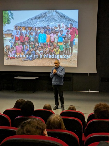 Le Père Bertrand de Bourran est venu témoigner de sa mission à Madagascar devant les classes de quatrième !