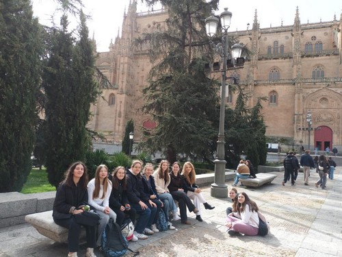 Les visites se terminent parfois à 20h. Le groupe travaille beaucoup et découvre de nouveaux lieux comme vous pouvez le constater : jardin de Calixte et Melibee, la double cathédrale, les cours avec les correspondants, la clerecía et les 150 marches de la Torre qui culmine, l’université privée, le “ciel de Salamanca”… A bientôt pour la suite de leurs aventures !