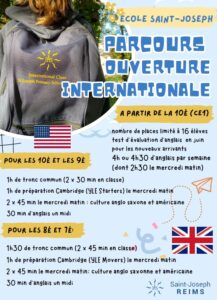 À partir du CE1, les élèves peuvent préparer les certifications Cambridge, dans la continuité du parcours proposé au collège Saint-Joseph.